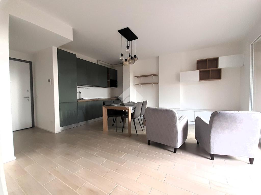 Proponiamo in locazione un appartamento arredato ideale per chi cerca comfort, funzionalità e tutti i servizi sotto casa. Situato in un contesto residenziale di nuova costruzione, l'immobile si trova al piano medio di un edificio realizzato nel 2024. Con una superficie di 65 mq, l'appartamento è composto da due locali ben distribuiti, la zona giorno si apre su un soggiorno con angolo cottura e l'accesso al balcone loggiato vivibile e ben esposto. Dal disimpegno andiamo in zona notte dove c’è la camera da letto, spaziosa e luminosa, con un secondo balcone che garantisce un ambiente tranquillo e riservato e il bagno finestrato. L'immobile è dotato di finiture moderne e impianti di ultima generazione, assicurando efficienza energetica e comfort abitativo.